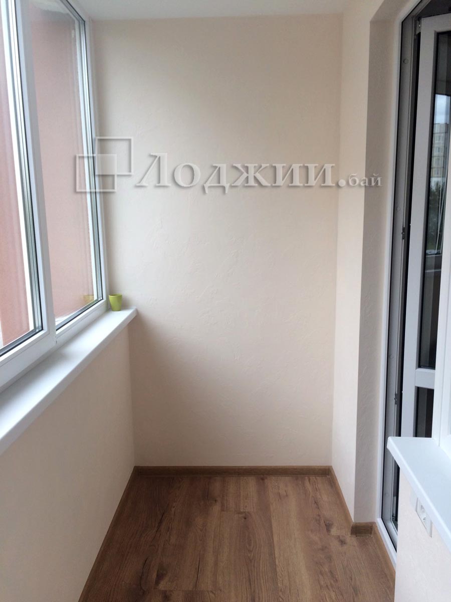 Частичная отделка балкона деревом и штукатуркой это всегда интересно и красиво! Данная лоджия была утеплена пеноплексом, устроен пол из фанеры на лагах, далее теплый пол и ламинат. Стены оштукатурены и покрашены, левая в декоре - имитация бруса с широкой фаской. Получилась уютная и теплая лоджия! Сроки выполнения работ 5 дней.