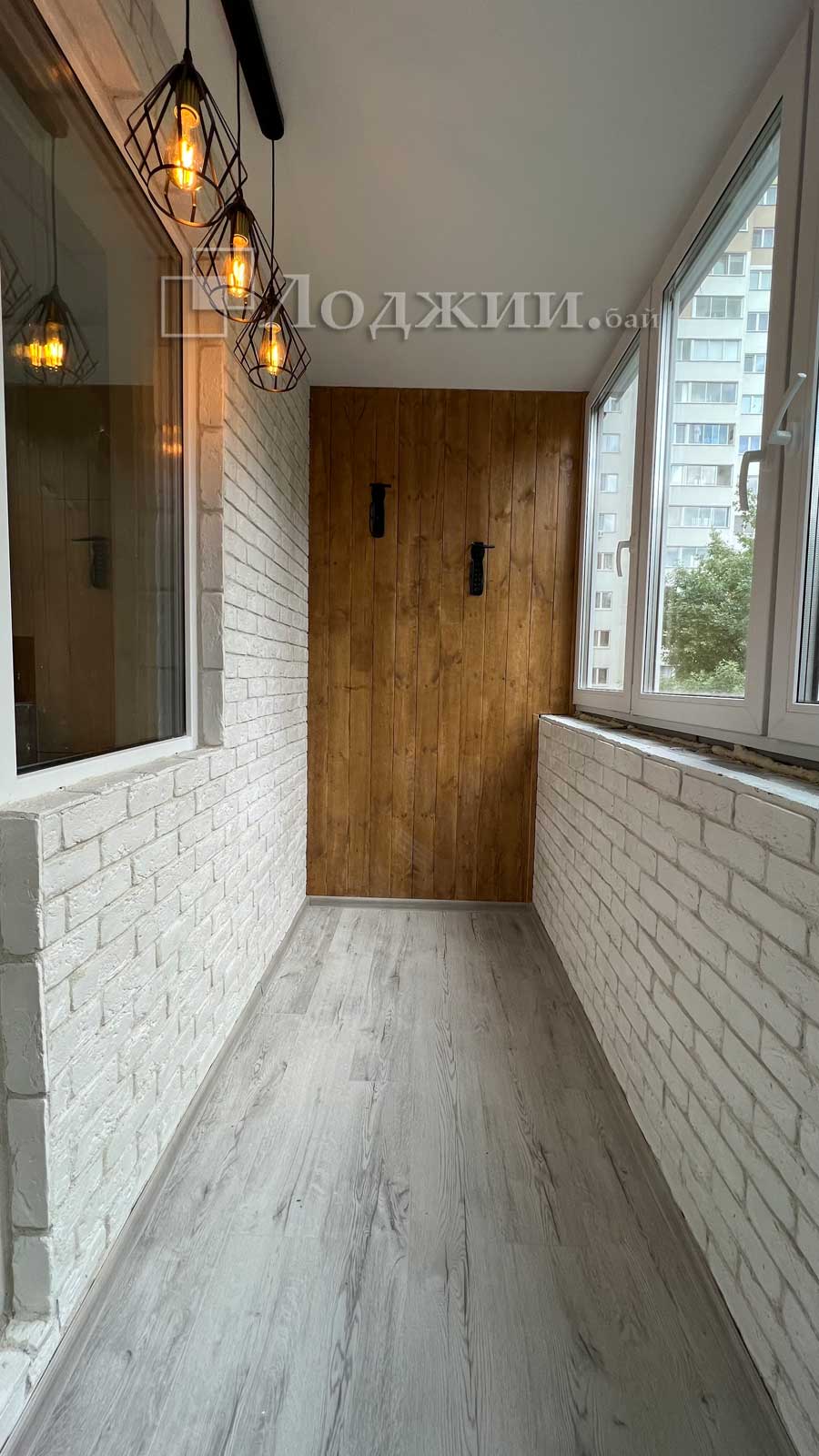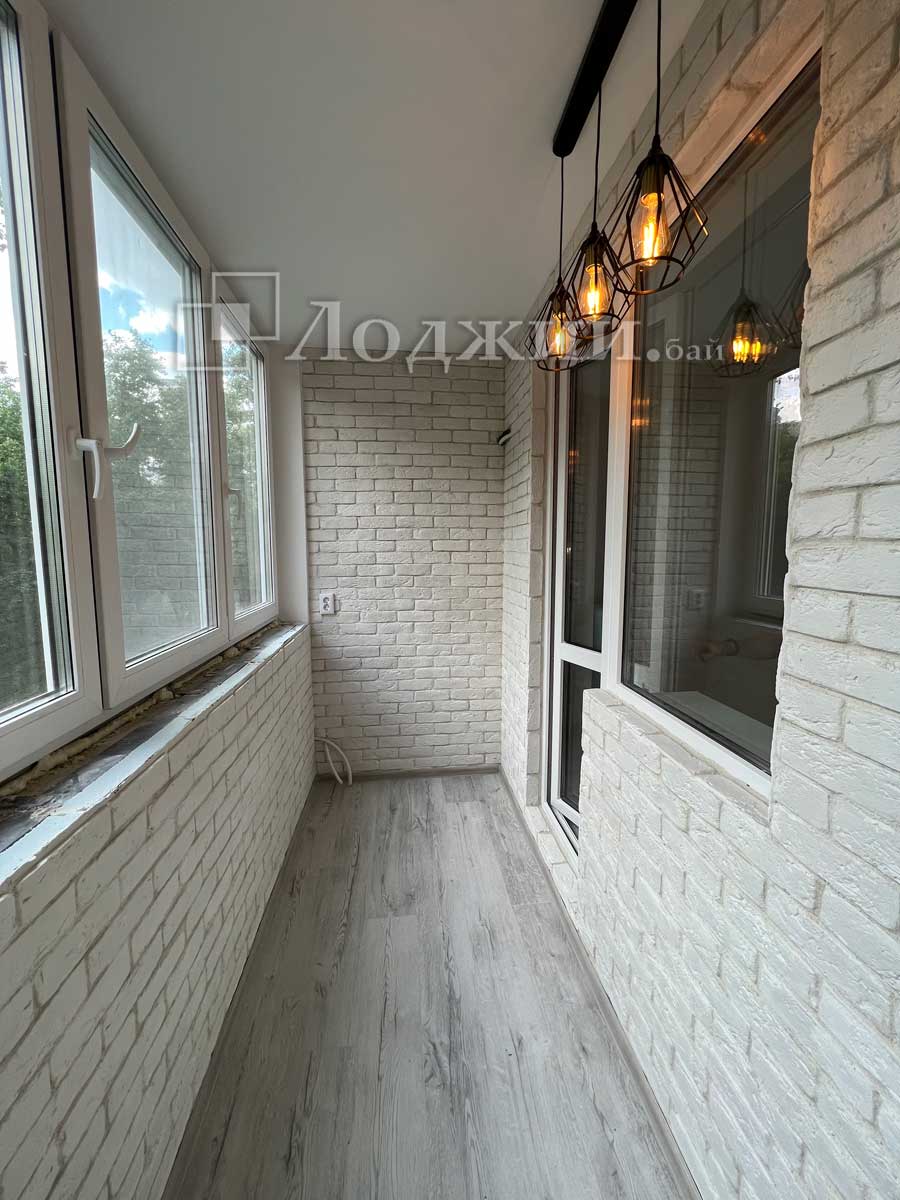 Готовая лоджия 4х1.5м от компании "Лоджии.бай". Выполняли все работы под ключ, а именно утепление всех стен пеноплексом, оштукатуривание стен и потолка,монтаж декоративного камня + имитация бруса с пропиткой. На полу фанера 18мм и ламинат, и конечно, теплый пол! Отделка балкона под ключ за 6 дней.
