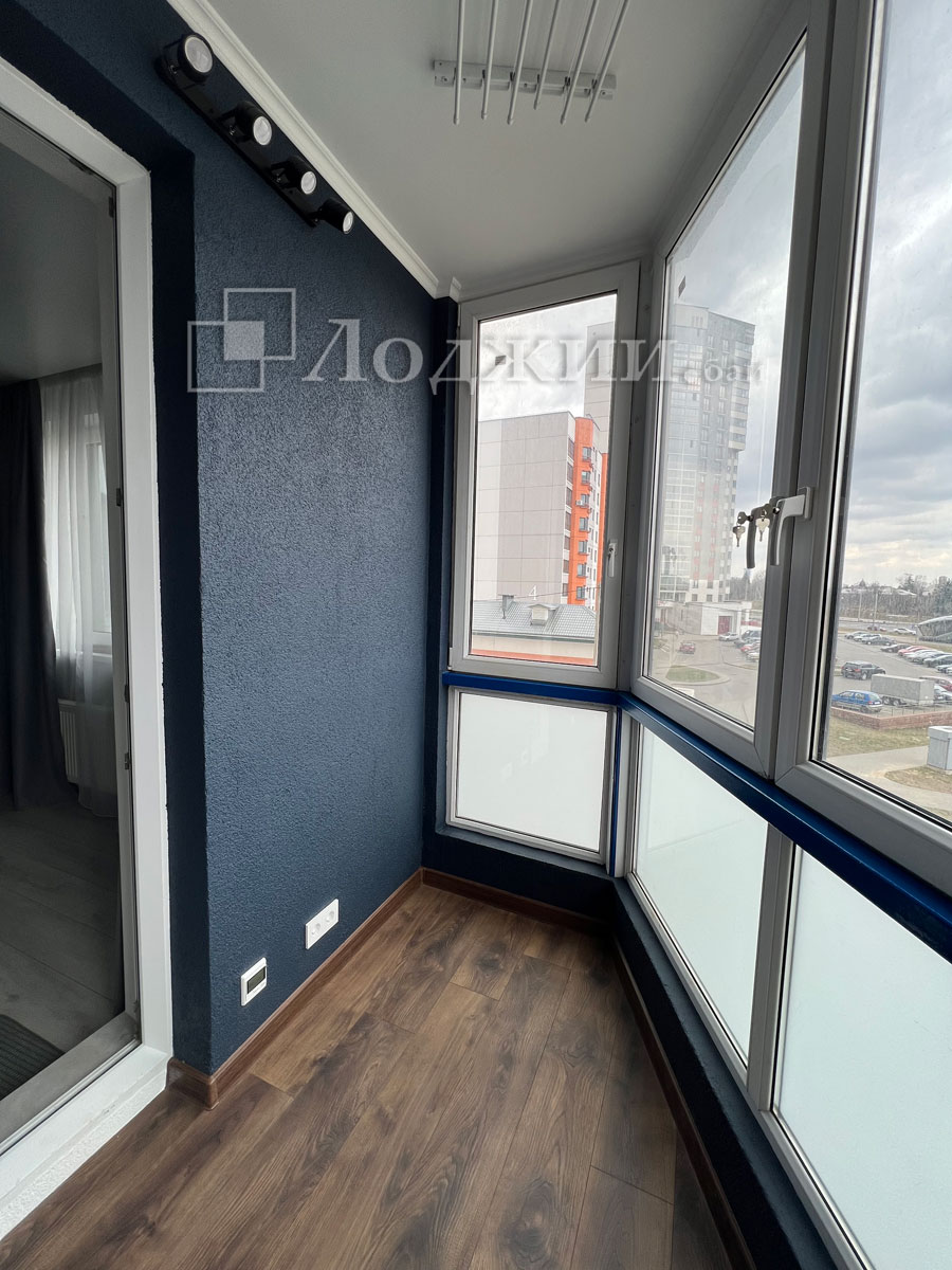 Перед нами стояла задача сделать рабочий кабинет на балконе. Для этого мы утеплили все стены по типу термос, далее сетка и штукатурные работы в комбинации с отделкой ламинатом. И обязательно теплый пол инфракрасная пленка. Развели электрику и смонтировали потолочный багет 50мм. Сроки 7 дней.